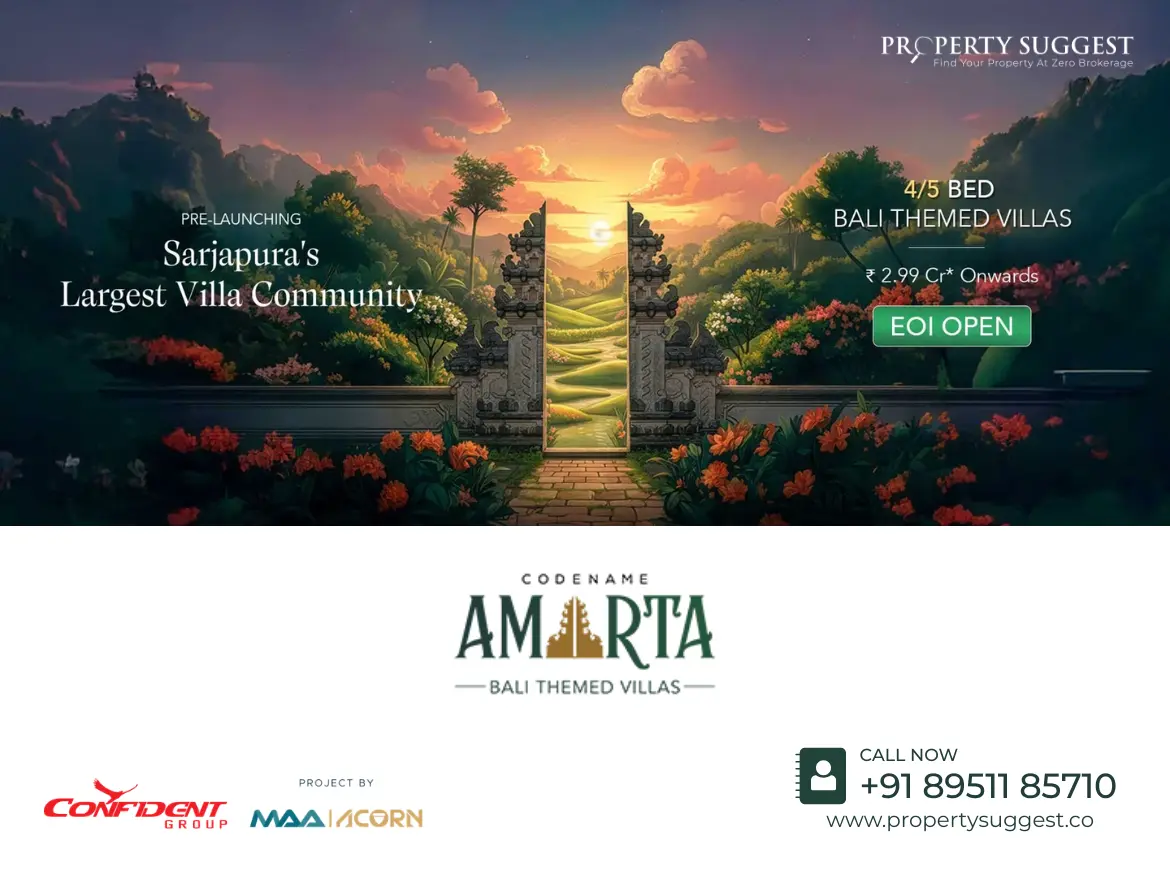 Confident Group Codename Amarta is an upcoming luxury villa development located in the fast‑growing Bagalur–Sarjapur Road corridor of Bangalore. Developed jointly by Confident Group and Maa Acorn, this expansive 75‑acre premium township will feature 400+ ultra‑luxury 4 and 5 BHK villa units, thoughtfully designed to offer spacious living, modern architecture, and an elevated lifestyle experience. As one of the most anticipated villa communities in East Bengaluru, the project is ideal for homebuyers searching for 4 and 5 BHK villas for sale in Sarjapur Road or exploring landmark developments within the region’s luxury housing market.